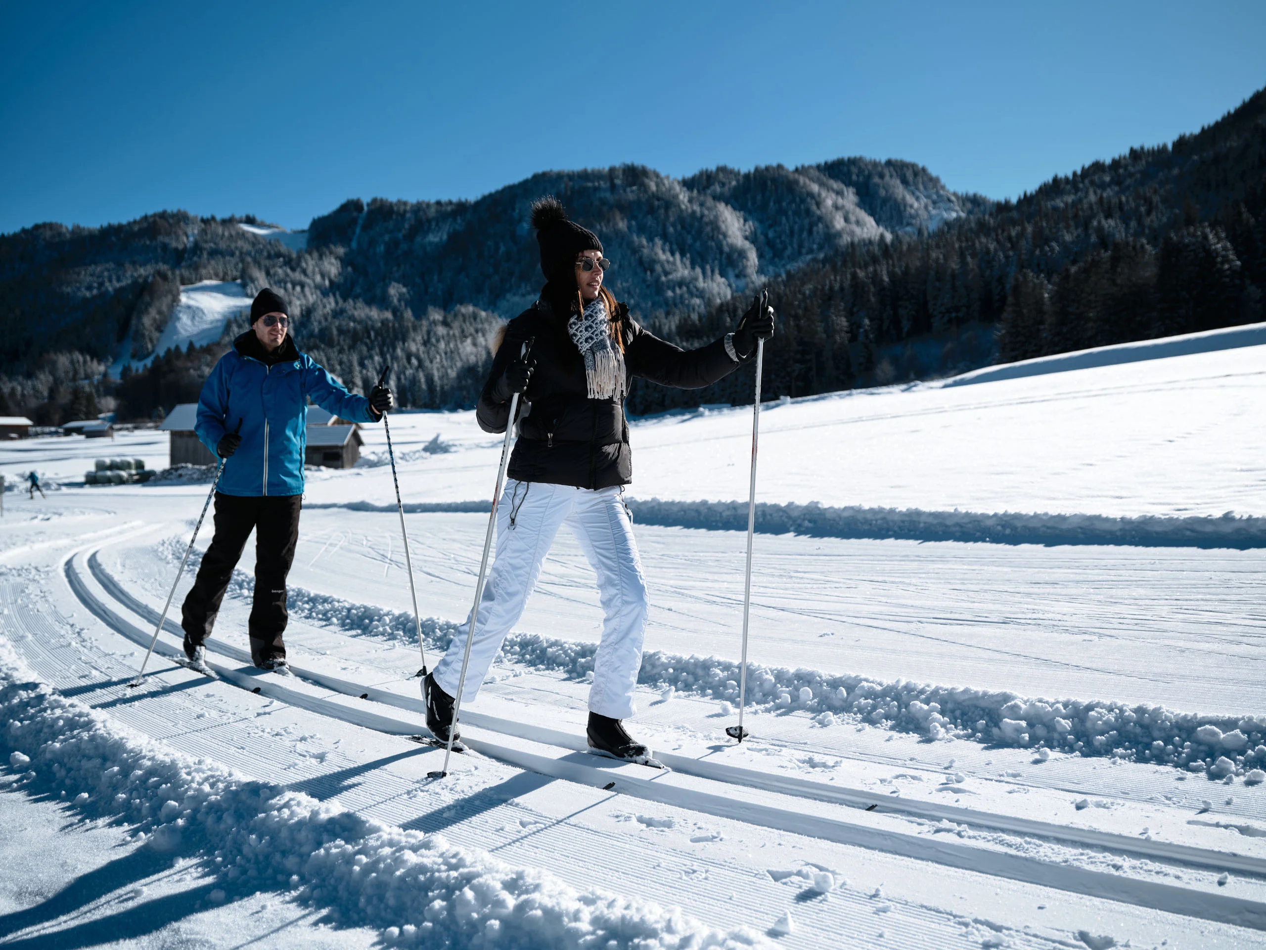 Zirbenholzausstattung. Bad mit Dusche, WC, Kosmetikspiegel, Haarfön. Telefon, SAT-TV mit Radiofunktion, Safe, Schreibtisch, Fauteuil. Couch, die zum Flexinno-Komforthochbett für zwei weitere Personen umfunktioniert werden kann. Böden Vinyl oder Teppich. Balkon zum Garten mit Tisch und Sessel.